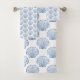 This beautiful bath towel set features coastal blue scallop shells on a background of solid white. Make a great housewarming gift!