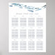 Our coastal chic seating chart design for summer weddings, engagement parties or rehearsal dinners features a school of blue watercolor fish along the top. Personalize this seating chart with a custom header and up to 12 guest tables in elegant navy blue lettering for a modern and minimal beachy look. Available professionally printed or as a digital download for local printing.