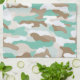 An enchanting blend of sea green and sandy browns make this contemporary camo print resemble costal waters, sand, and stone.