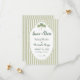 This whimsical coastal wedding photo save the date features a lace border, palm trees, and stylish sage green stripe background. Perfect for a beach or California destination wedding. Your photo is framed in a whimsical lace frame on the back. Created by Simply Farmhouse Press.