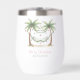 This fun coastal holiday inspired Christmas thermal wine tumbler features palm trees decorated with ornaments and a hammock on each side. Personalize with your choice of name or special text on the front and back. Great for personalized holiday party decorations and party favor gift bags.