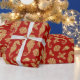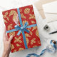 Coastal Christmas Seahorse Gold Glitter Red Wrapping Paper