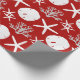 Beautiful coastal Christmas wrapping paper features a pattern of starfish, sand dollars, and glitter coral in a red and white colour scheme.