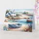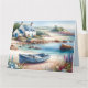 This charming coastal scene captures a tranquil seaside moment with a whitewashed cottage nestled among blooming wildflowers and soft golden sand. A weathered blue rowboat rests on the shore, gently tethered near calm turquoise waters, while rocky outcrops dot the serene bay. The hand-painted effect, complete with soft watercolor textures and sun-washed tones, evokes a nostalgic countryside escape reminiscent of summer holidays and simpler times. Rolling hills fade into the horizon beyond the cliffs, and vibrant foxgloves, poppies, and daisies frame the foreground, adding a romantic touch of color. Ideal for evoking calm and wanderlust, this picturesque coastal setting brings timeless charm to any space. AI generated artwork.