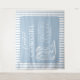 personalised Coastal cowgirl theme bachelorette party tapestry in light blue and white with cowboy boots is perfect as a bachelorette party photo backdrop. Personalised with your name and the slogan "last rodeo". Celebrate your bridal shower in style with the perfect country western party theme, the perfect theme for the horse lover, vintage Wild West themed cowgirl bride and her bridesmaids.