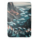 Coastal Energy: This vibrant flat vector illustration captures the dynamic beauty of a rocky beach from an overhead perspective. Dark blue and orange tones bring life to the scene as waves crash onto the shore, creating a captivating contrast. Geometric shapes add depth, while detailed textures on rocks and plants bring a natural feel to this stylized artwork. The minimalistic design emphasizes movement and energy, making it a perfect piece for those looking to add a bold and modern coastal vibe to their collection.