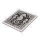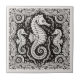 This coastal ceramic tile features a trio of detailed seahorses framed by an intricate border of swirling waves, coral branches, bubbles, and stylized marine flourishes. Rendered in charcoal black with crisp ivory white, the design has a classic two-tone block-print look that highlights its detailed linework and coastal charm. The rich pattern and handcrafted feel make it a versatile choice for beach homes, nautical décor themes, accent walls, backsplashes, craft projects, and coordinated coastal collections. Search ID1208 to see additional colors and design motifs in this series. Note: design may contain generative content