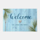 “Welcome.” Keep your summer memories close to your heart all year long with this beachy light blue wood with nautical rope, coral heart, and coastal sea grass custom name doormat. Enhance your entryway and get ready to be transported back to your fondest happy place. Also great for your summer beach house!