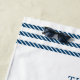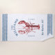 Coastal Lobster Seaside Family Vacation beach towel features a red watercolor Maine lobster with navy blue striped nots at each end. Personalize it with your family name and the date established. Perfect for summer beach homes, waterfront cottages and family vacations.