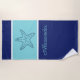 Coastal Modern Navy Blue Teal Monogram Starfish Beach Towel