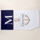 Coastal Navy Blue Anchor Nautical Monogram Name Beach Towel