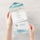Set the tone for elegant seaside wedding with this all in one beach wedding invitation featuring beautiful watercolor ocean.