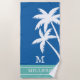Coastal Palm Trees Monogram Family Name Blue Green Beach Towel