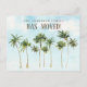 Modern moving announcement featuring a beautiful watercolor tropical palm trees. Flip our moving announcement over to view a coordinating back for an extra special touch.