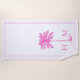 This fun beach towel features a coastal palmetto palm tree in bright pink and white. Personalize the monogram with your choice of initials.