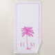 Coastal Pink and White Palmetto Palm Tree Monogram Beach Towel