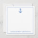 This coastal inspired note card features a classic nautical coastal anchor in blue and white and can be personalized with your choice of name or special text in matching blue.