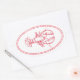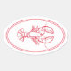 This coastal inspired oval sticker features a classic lobster red and white on a solid white background.