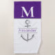 Serviette De Plage Ancre côtière violet Nom du monogramme nautique