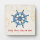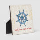 A cute, nautical watercolor design featuring a captain's wheel & script text phrase.
