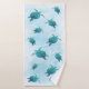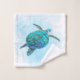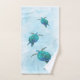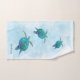 This personalized coastal towel set features colourful sea turtles with abstract watercolor ocean waves in the background.