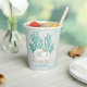Coastal or beach-themed Christmas paper cups featuring gold and turquoise faux glitter coral, sand dollars and starfish with a faux gold glitter SEAS & GREETINGS typography design and optional custom text. ASSISTANCE: For help with design modification or personalization, colour change, resizing, transferring the design to another product or if you would like coordinating items, contact the designer BEFORE ORDERING via the Zazzle Chat MESSAGE tab below or email makeitaboutyoustore@gmail.com.
