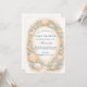 A soft coastal design featuring an elegant oval wreath composed of seashells, oysters, starfish, sea glass, and delicate dune grasses. Neutral sandy tones blend beautifully with muted blue accents, creating a refined seaside aesthetic that feels airy and sophisticated. The warm ivory background enhances the natural textures while keeping the layout clean and graceful. Perfect for a beach-inspired celebration with timeless, understated charm.