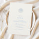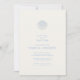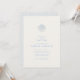 Elegant baptism invitation design featuring a hand-painted blue and white shell on a soft beige background that creates a timeless, coastal feel—perfect for classic, minimalist, seaside-inspired baptisms. The shell represents an old baptism symbol that was used to pour the water.