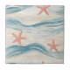 Coastal Starfish on Aqua Sand Waves Pattern (2) Tile