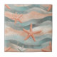 A soothing coastal pattern ceramic tile featuring soft aqua waves, sandy textures, and coral starfish scattered across a breezy beach palette. This calming ocean-inspired design is ideal for beach lovers, coastal décor fans, and anyone who enjoys serene summer aesthetics. A thoughtful gift for seaside birthdays, coastal weddings, ocean retreats, and warm-weather celebrations.