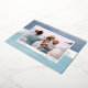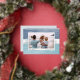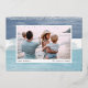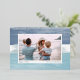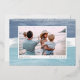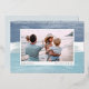 Chic coastal style holiday card adds nautical flair to your Christmas greetings. Perfect for sharing a vacation photo, or for families who live in coastal, tropical, warm weather or island locales, this elegant design features your favorite horizontal or landscape oriented photo on a background of blue and sea green watercolor stripes, with a sprinkle of silver foil at the top and bottom. Add your custom holiday message and your names or family name.