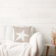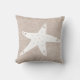 Coastal taupe herringbone and white starfish silhouette throw pillow.