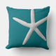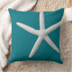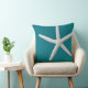 Coastal Teal Tropical White Starfish Modern Beach Throw Pillow