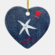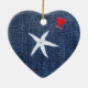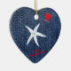 Coastal Theme Valentine's Day Red Heart & Starfish Ceramic Ornament