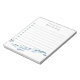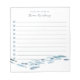 Personalize this coastal chic lined to-do list notepad with two lines of custom text in classic navy blue script and serif lettering. Design features a school of blue watercolor fish swimming along the bottom. Shown with "from the desk of [Name]" and lined checkboxes to keep all your most important tasks organized.