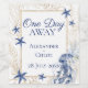 Personalize your wedding reception or rehearsal dinner drinks with this elegant Nautical Chic Wine Bottle Label. Matching our popular Coastal Wedding suite, this label features the sophisticated navy blue and faux gold glitter theme with watercolor starfish and a jellyfish. The label includes the phrase "One Day Away" and the couple's names and date, making it perfect for custom favors, bar decor, or as a memorable gift. Ideal for a yacht club, beach, or seaside celebration.