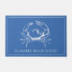 This fun door mat features a classic coastal crab in white on a background of soft navy blue. Personalize with your choice of name or special text.