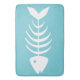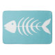 Coastal white fish bones silhouette bath mat with a cyan blue background that can be customized.