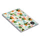 Hand painted tropical floral design in rich oranges, greens and pinks by Shelby Allison.