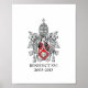 Pope Benedict XVI made history with his election in spring 2005, and has made an equally memorable exit with the announcement of his abdication of the throne of St. Peter in February 2013. A man of great faith and deep culture with the heart of a teacher, his eight years in the Vatican saw him cast the seeds of Christ's message on rocky and fertile ground alike. Remember this great man and his humble exit through displaying his coat of arms, showing the emblems of his Bavarian home in the archdiocese of Munich and the scallop-shell of baptism and pilgrimage. Original art by Matthew Alderman. http://www.matthewalderman.com