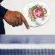 Ping pong paddle with design with coat of arms of Vilnius, capital city of Lithuania; with illustration of saint Christopher and infant Jesus