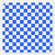 A blue and white checkerboard pattern with alternating squares fills the image, creating a geometric, balanced design with a classic, symmetrical feel.