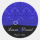 Cobalt Blue and Black Damask 1.5" Round Sticker