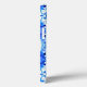 Phone case in a batik effect, tilled pattern, with abstract floral elements, in shades of denim, cobalt and sky blue against a white background