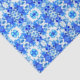 Tissue paper in a batik effect, tilled pattern, with abstract floral elements, in shades of denim, cobalt and sky blue against a white background