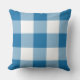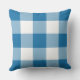 Pillow design features a casual gingham plaid / check pattern that is perfect for summertime! Note, you can customize the cobalt blue background colour to coordinate with your outdoor decor.