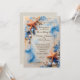 The image shows an elegant wedding invitation design with a beach theme. The border is a thin, gold frame with decorative elements primarily located at the top and bottom corners. These elements include a variety of seashells and star fish in soft hues of blue, cream, and beige. The background features watercolor washes in shades of cobalt blue and aqua, evoking the serene and tranquil essence of the seaside. This design is perfect for conveying a sense of elegance and beauty for a beachside wedding invitation. Personalize the text regarding the names and details of the wedding. You can download the card to your mobile device or computer. I designed the card with the help of ai technology.