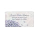 This sweet personalized Wedding address label has a dark cobalt blue, soft periwinkle blue and soft lilac purple hydrangea floral bouquet at the bottom left with some petals flying to the right. In the background, there is a faded damask pattern and a stripes graphic. At the top, you can easily customize the names and address. This would be great for a spring or summer wedding.