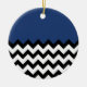 Cobalt Blue Pattern On Large Zigzag Chevron Ceramic Ornament