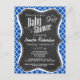 You will love this cute, elegant, vintage chalkboard design with Cobalt Blue Quatrefoil pattern design! We invite you to our store, Baby Shower Boutique, to view this cool retro blackboard design on many more great customizable products, including retro Baby Shower invitations and baby boy & girl gifts! Thank you!